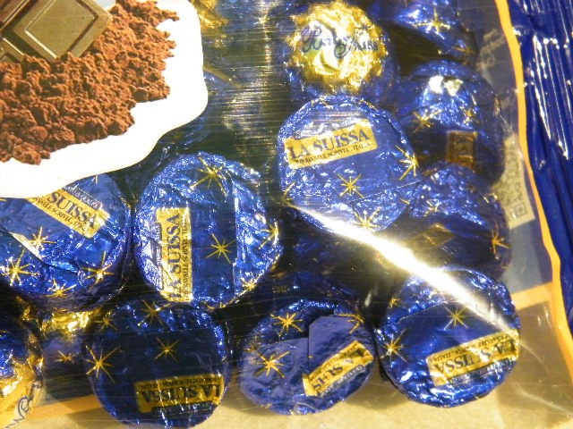 Saco com 1kg de deliciosos bombons de chocolate negro recheados com chocolate de avelã e pedaços de avelã.