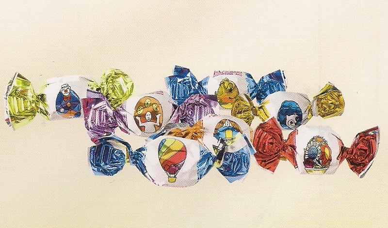 Ovinhos de chocolate de leite com creme de leite e cereais, embrulhado em forma de rebuçado. Saco 1Kg